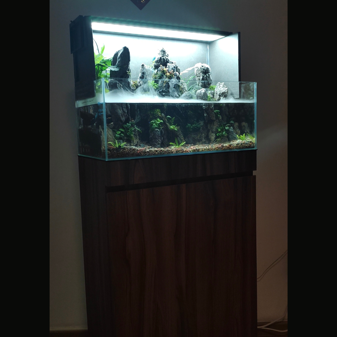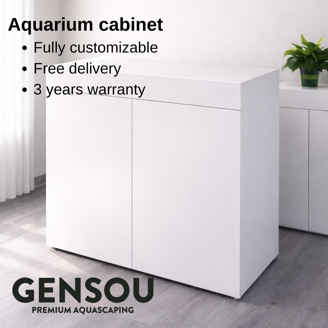 Custom-built aquarium with free delivery, $200 booking deposit, flexible laminate cabinet options, and trusted 5-star service in Singapore.
